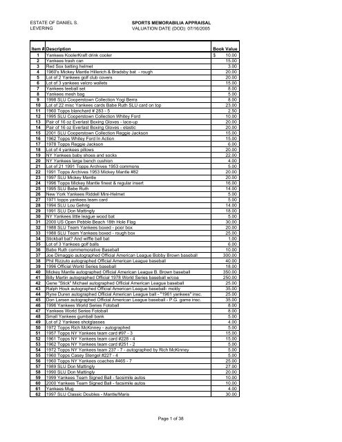 Sports Memorabilia Appraisal As Received With M Riley E Mail Of